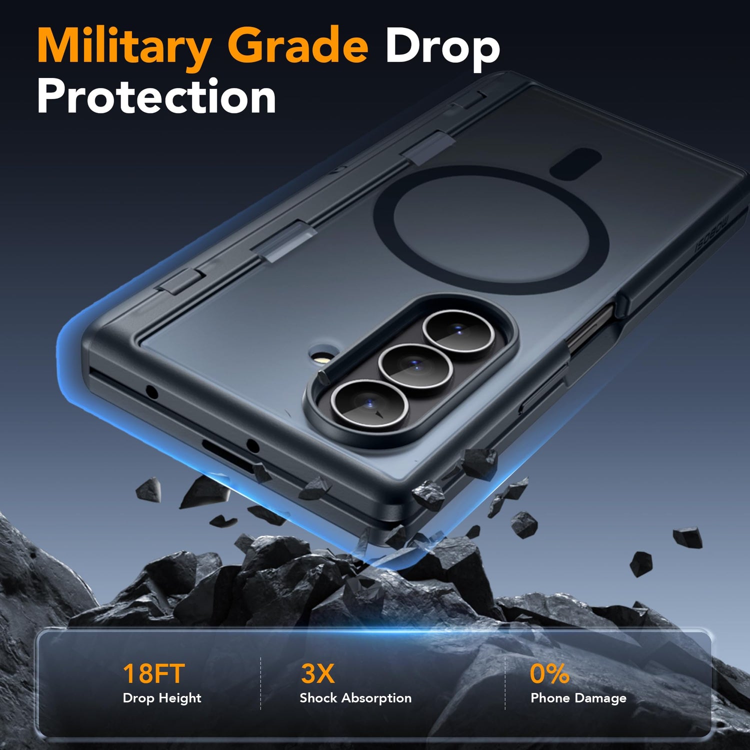 Precision-engineered forGalaxy Z Fold 7. Our 2-in-1hinge reinforcementand shock-absorbing TPU frame provide military-grade defense, ensuring a smooth fold and total peace of mind against drops.