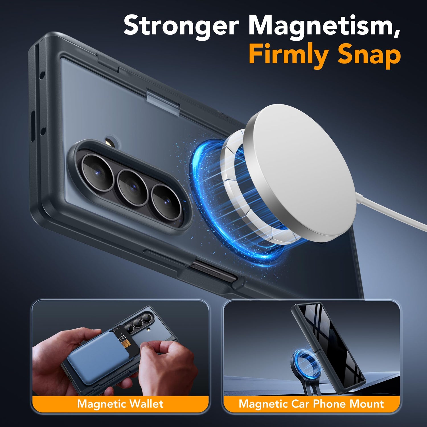 Built with38 powerful N52SH magnets, thisGalaxy Z Fold 7 casedelivers a rock-solid snap for allMagSafe accessories. Experience seamlesswireless fast chargingand secure mounting without ever removing your defense.
