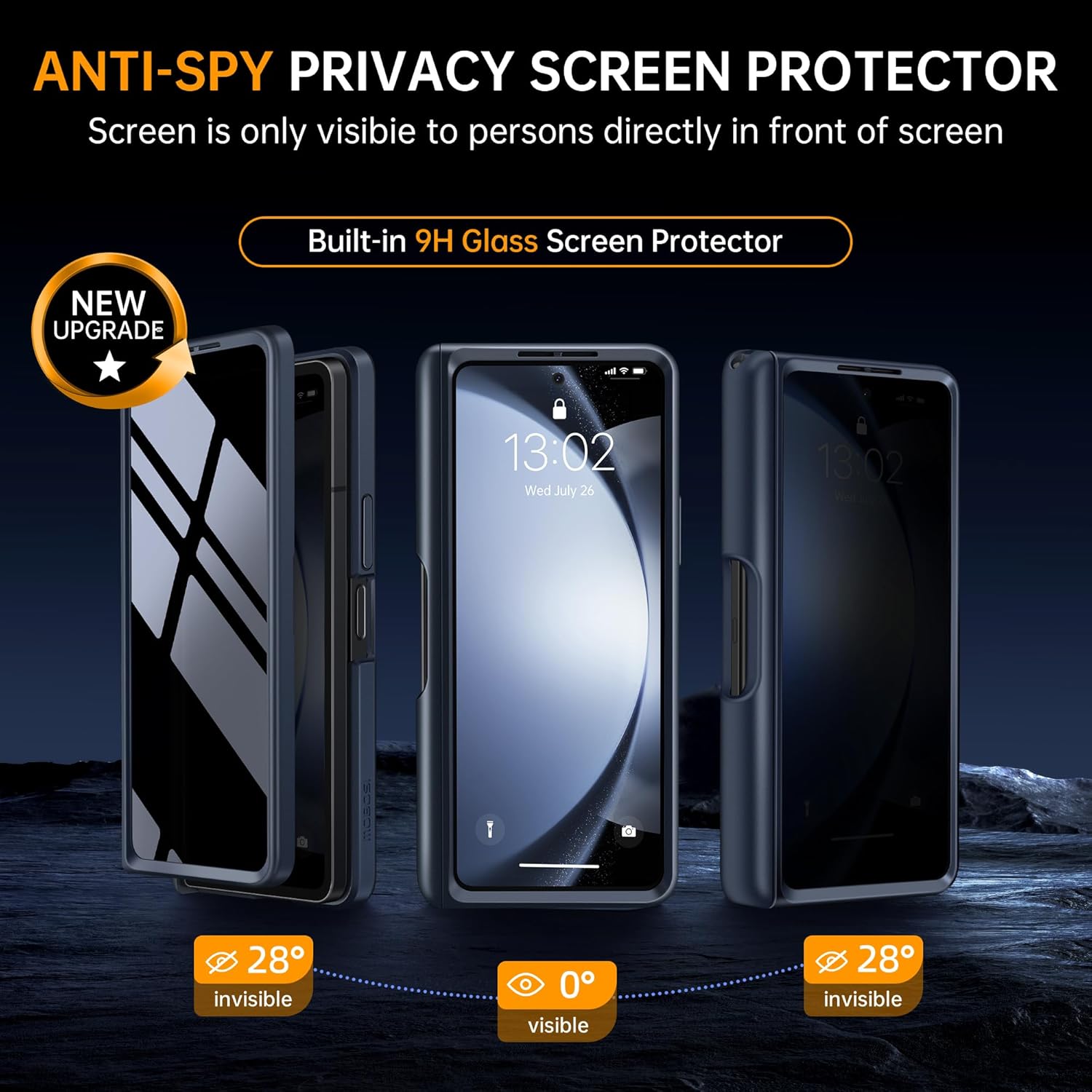 MOBOSI for Z Fold 5 Case with S Pen Slot, Compatible with Magsafe, [Built-in 360° Spin Ring Stand&Screen Protector&Hinge Protection] Full Body Slim Phone Case for Samsung Galaxy Z Fold5, Privacy Black